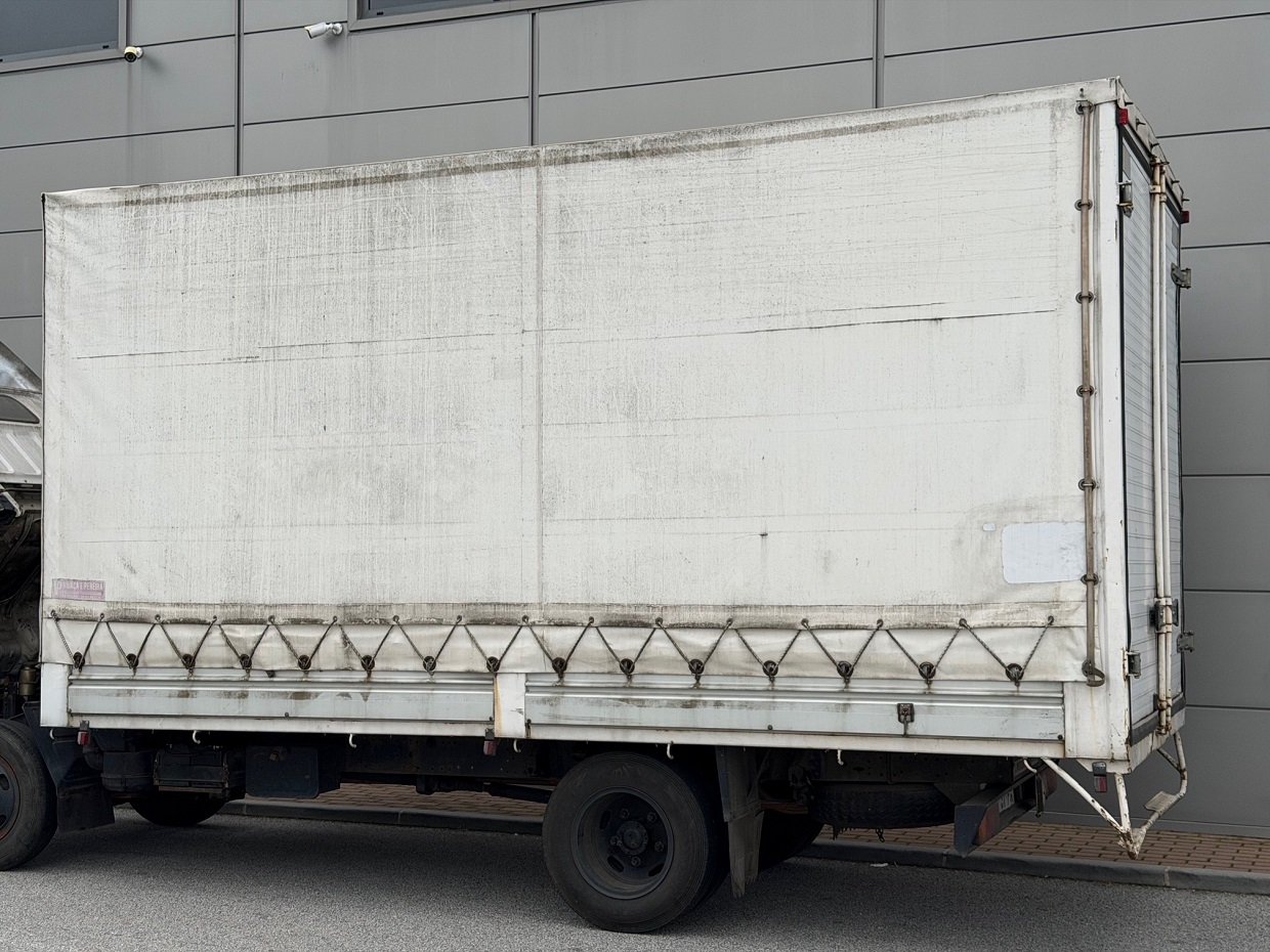 Caixa montada em Mitsubishi Canter FE331. Corta-Vento incluído.